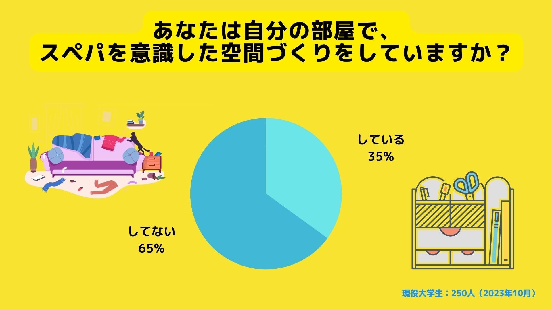 スペパの概念を解説した上で追加調査をしたところ「実際にスぺパを意識した空間作りをしている」という大学生は35%という結果に。