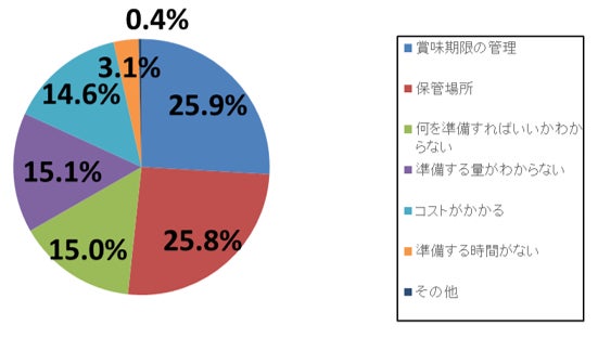防災グッズの準備で困っていることの1位は「賞味期限の管理」、2位「保管場所」、3位「何を準備すればいいかわからない」という結果になりました。