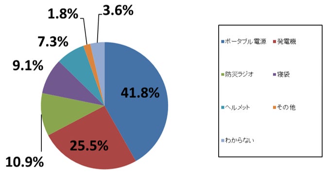 高額な防災グッズの1位は「ポータブル電源」、次いで2位は「発電機」、3位は「防災ラジオ」となりました。災害時にはライフラインが寸断されることも想定されますが、停電時に活躍しそうなグッズが上位を占める結果となりました。