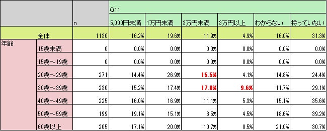 前回の調査同様、防災セットにいくらお金をかけているか尋ねたところ、1万円未満と答えた方が最多となりました。3万円以上の防災セットを備えている人には20代~30代の方が多く見られました。