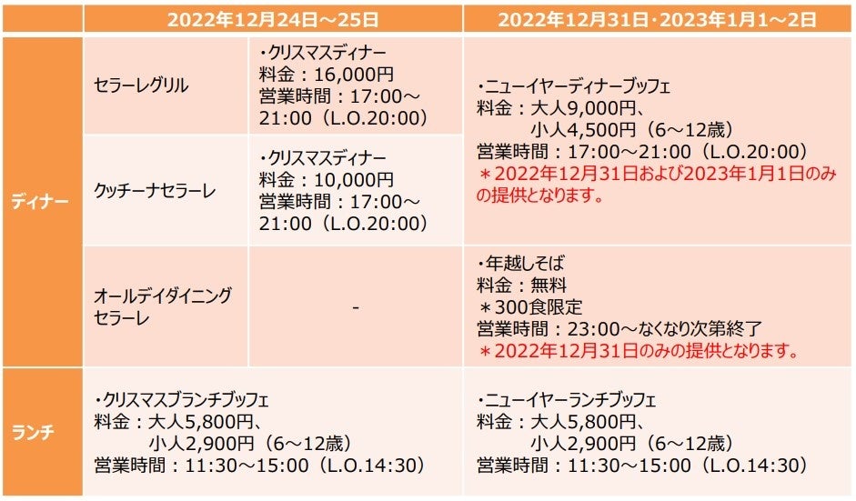 - 「オールデイダイニング セラーレ」&イタリアン「クッチーナセラーレ」年末年始を華やかに楽しむ期間限定メニュー