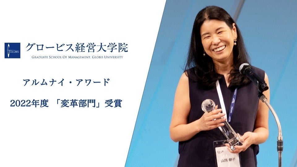 グロービス経営大学院は、第18回「グロービス アルムナイ・アワード」の2022年度受賞者を決定し、7月2日(土)に行われた「あすか会議2022(※)」にて授賞式を執り行い、変革部門にて当社の山岡朝子が受賞した他、創造部門、新たに創設されたソーシャル部門の3部門で合計5名にアワードを授与しました。