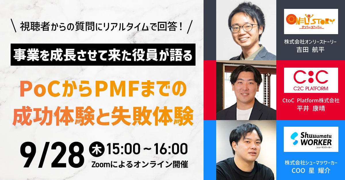 PMFを目指す全てのスタートアップ企業必見!「PoCからPMFまでの成功体験と失敗体験」ウェビナーを2023年9月28日に開催