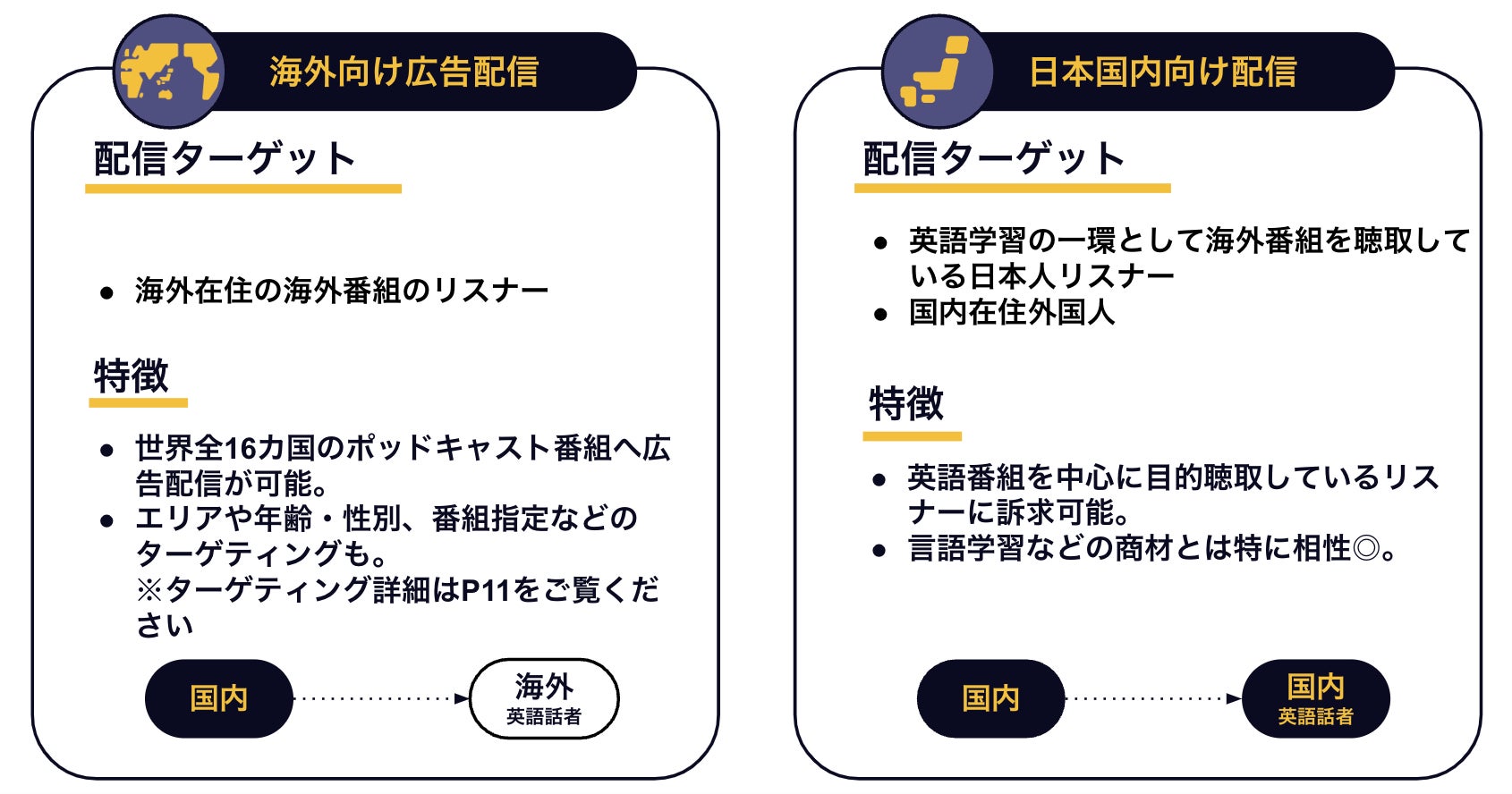 配信ターゲット(例):英語学習の一環として海外番組を聴取している日本人リスナー/国内在住外国人