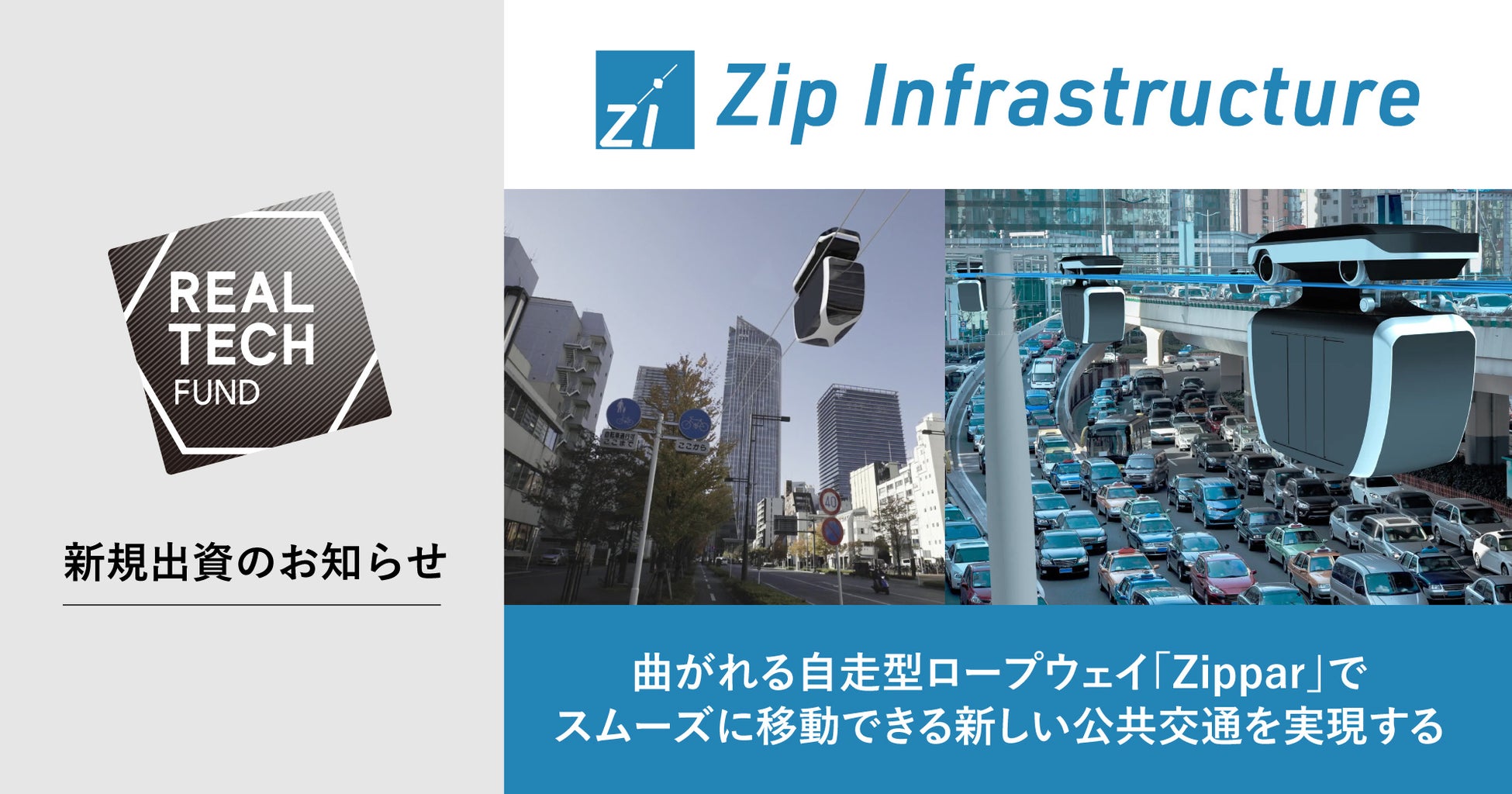公共交通の長年の課題を解き、誰もがスムーズに移動できる世界を実現するミッションを実現すべく、リアルテックホールディングス株式会社(所在地:東京都墨田区、代表:丸幸弘、永田 暁彦)が運営するリアルテックファンド*は、⾃⾛型ロープウェイ「Zippar」の設計・開発を行うZip Infrastructure株式会社(本社:神奈川県秦野市、代表取締役:須知高匡、以下「Zip社」)へ投資を実施したことをお知らせ致します。Zip社は今回の調達資金をもとにZipparの研究開発を進め、公共交通としての認可取得に向けた安全性試験を開始します。