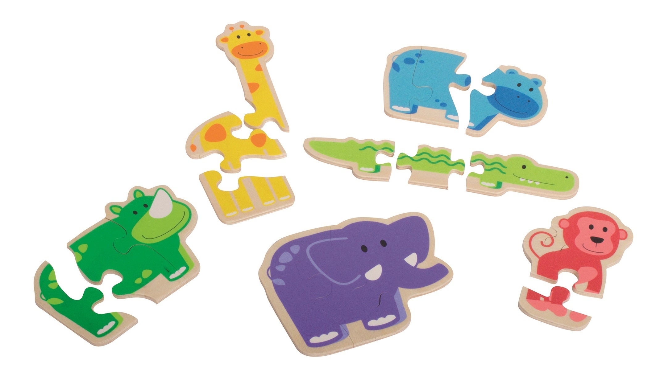 3つのピースを組み合わせて動物を作る、絵合わせパズル。大きなピースで、初めてのパズルにおすすめです。色・カタチを観察して分類したり、各ピースを連結したりと、集中力や想像力、指先の発達に繋がる要素が詰まっています。