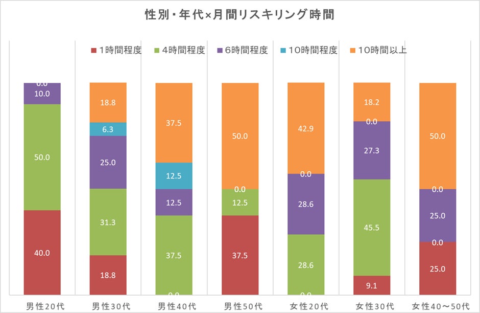 - 高年齢ほどリスキリングに10時間以上かけている傾向が明らかに