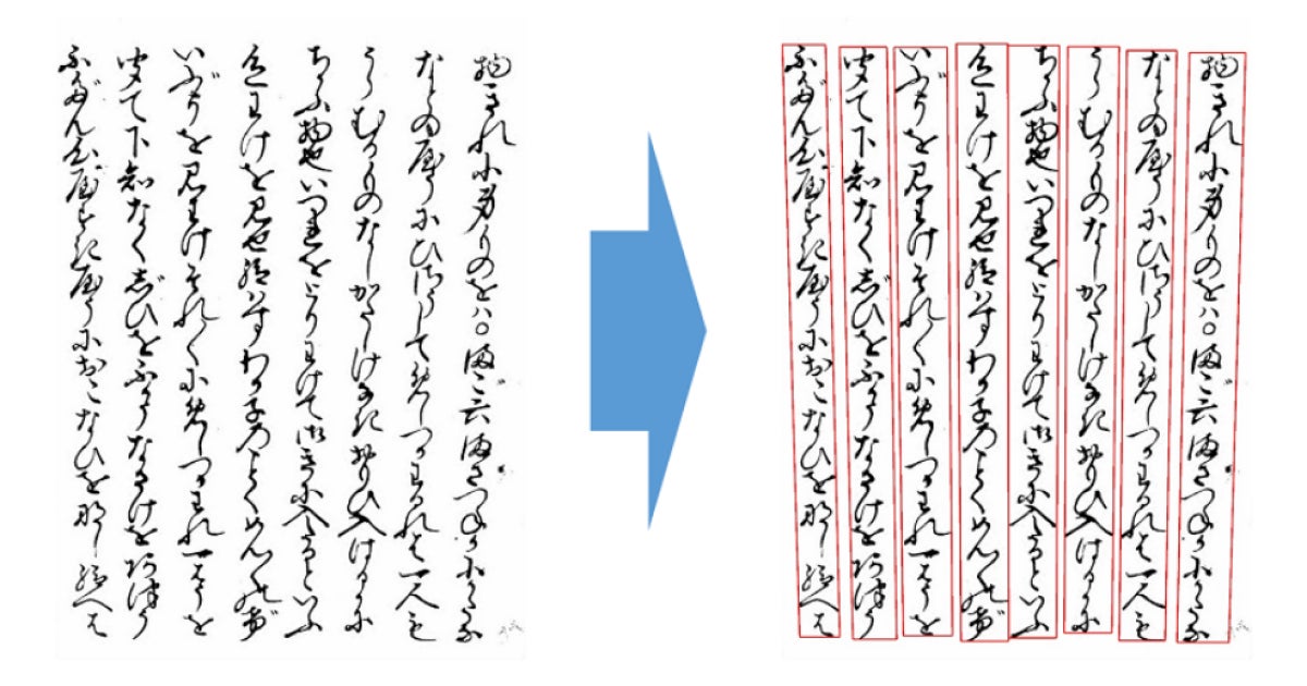 あるページで切り取られた1行に対して、書かれているくずし字を認識するアルゴリズムを作成していただきます。