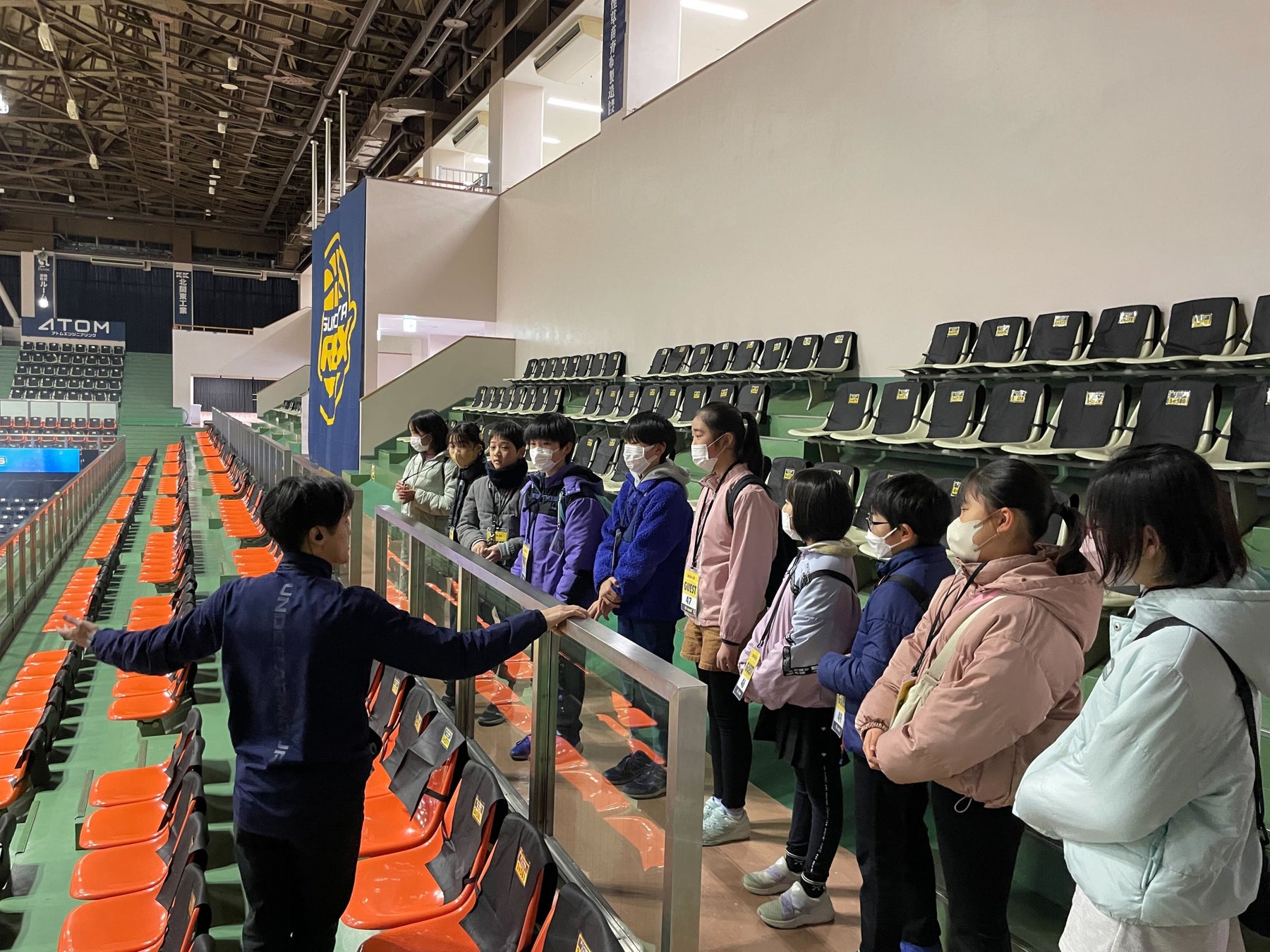 本企画は、宇都宮市職業体験「宮っこトライ」の取り組みとして行われ、当日は応募者の中から選ばれた10名の小学生が参加し、試合前のアリーナ内を見学しました。