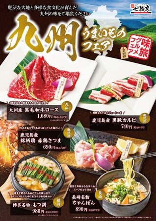 株式会社安楽亭(本社:埼玉県さいたま市、代表取締役社長:柳 先 以下「当社」)が運営する「炭火焼肉 七輪房」では、日本各地の美味を七輪房で楽しむ「味旅グルメフェア」の第四弾として、「九州うまいものフェア」を2022年12月16日(金)より開催いたします。