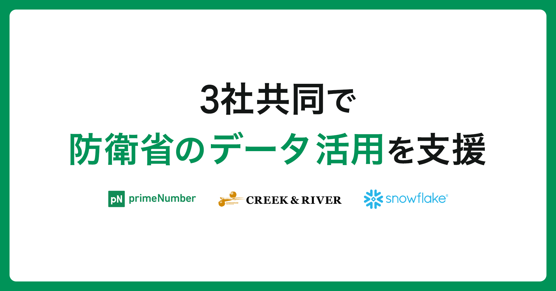 primeNumber、クリーク・アンド・リバー社、Snowflake、3社共同で防衛省のデータ活用を支援