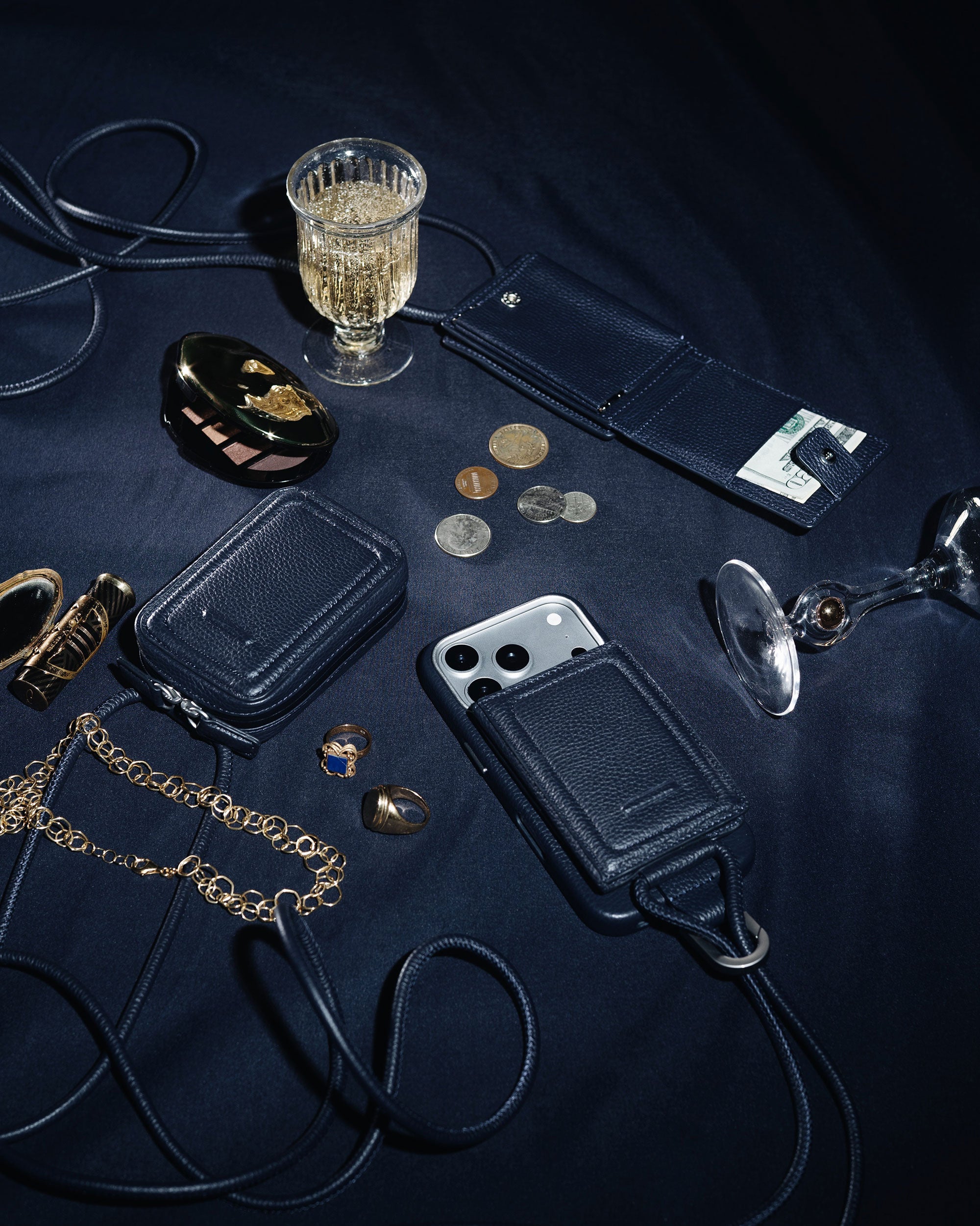「ミッドナイト」・「チャコール」は、卒業式や入学式などオケージョンシーンにも適した落ち着きのあるカラーリング。ポケットのないワンピースやミニバッグで出かけることが多いハレの日に、iPhoneと貴重品をハンズフリーで美しく持ち運べるスマホショルダーとして活躍します。