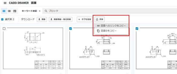 加えて、図面のシェアボタンを追加しました。該当図面へのリンクや図面IDを瞬時にコピーすることで、ユーザー間でのデータ連携を促進します。