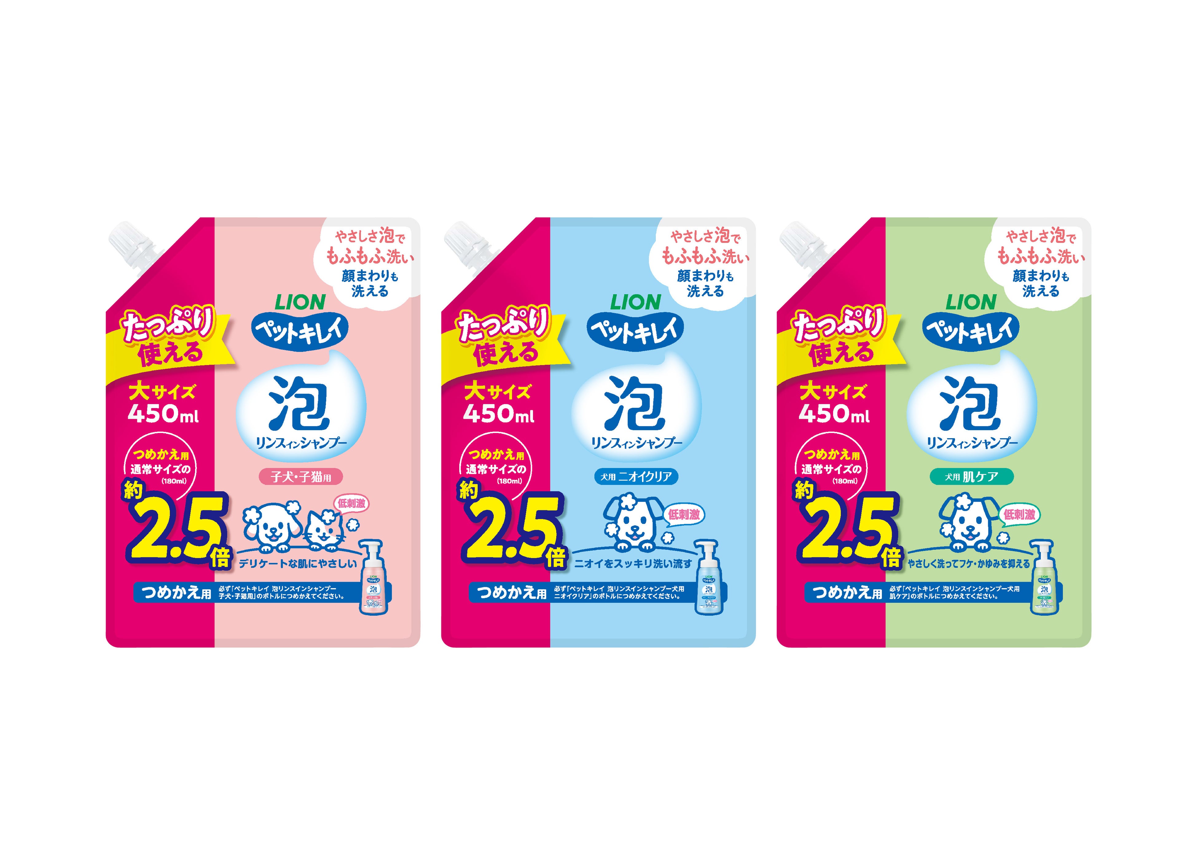 自宅シャンプー習慣を応援 『ペットキレイ 泡リンスインシャンプー』大容量ニーズに応えた「つめかえ用大サイズ」を新発売(ライオンペット㈱)