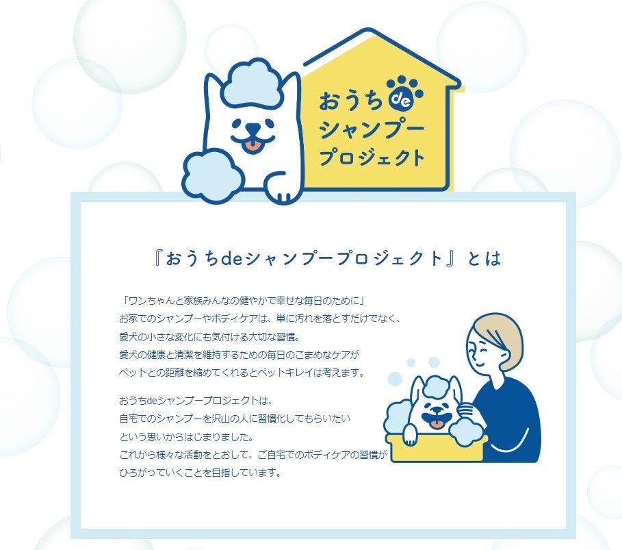 また、『ペットキレイ』では、犬の健康と清潔を維持する新習慣として、自宅シャンプーを応援する【おうちdeシャンプープロジェクト】を2023年6月より推進しています。
