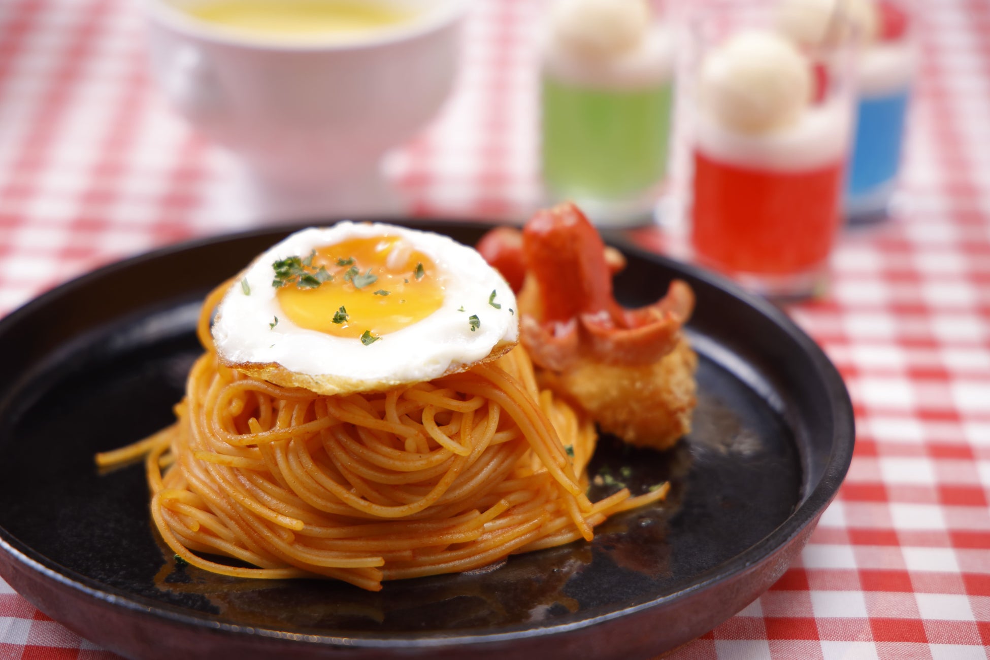 昭和レトロな喫茶店の定番、鮮やかな赤色が食欲をそそるケチャップベースのスパゲッティ。