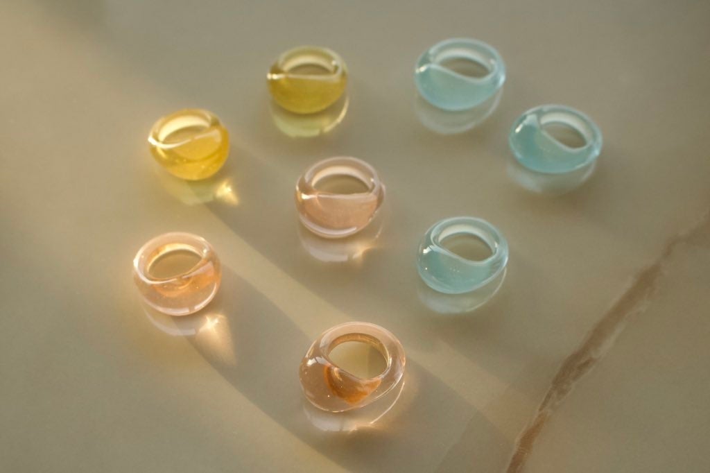デザイナー自ら手作業で制作しているガラスリングシリーズに春の新色が登場。