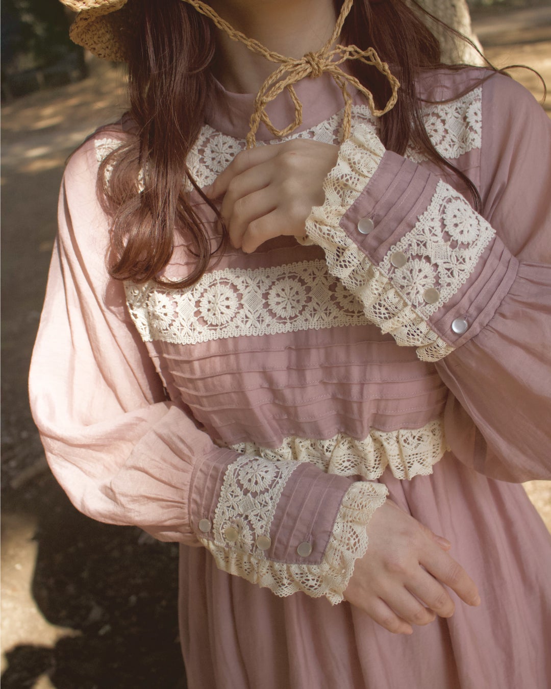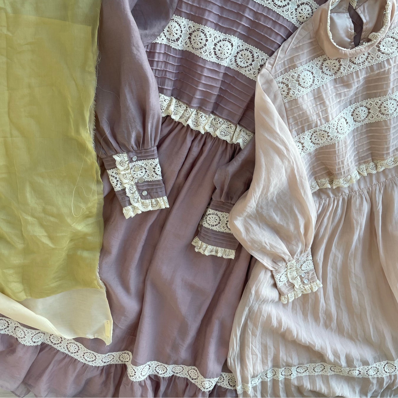 生地やレース、ボタンひとつをとっても、当時のデザインと見分けがつかないほど。