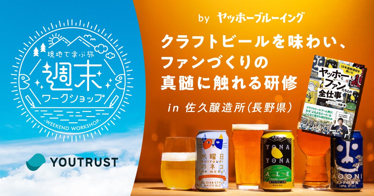 「-現場で学べる旅-週末ワークショップ」は週末の時間を使って、さまざまな場所を訪れることで、その場所でしか得られない一次情報を学ぶための研修企画です。第1弾の研修企画はヤッホーブルーイングと共同で「クラフトビールを味わい、ファンとの絆づくりの真髄に触れる研修 in 佐久醸造所(長野県)」を開催します。