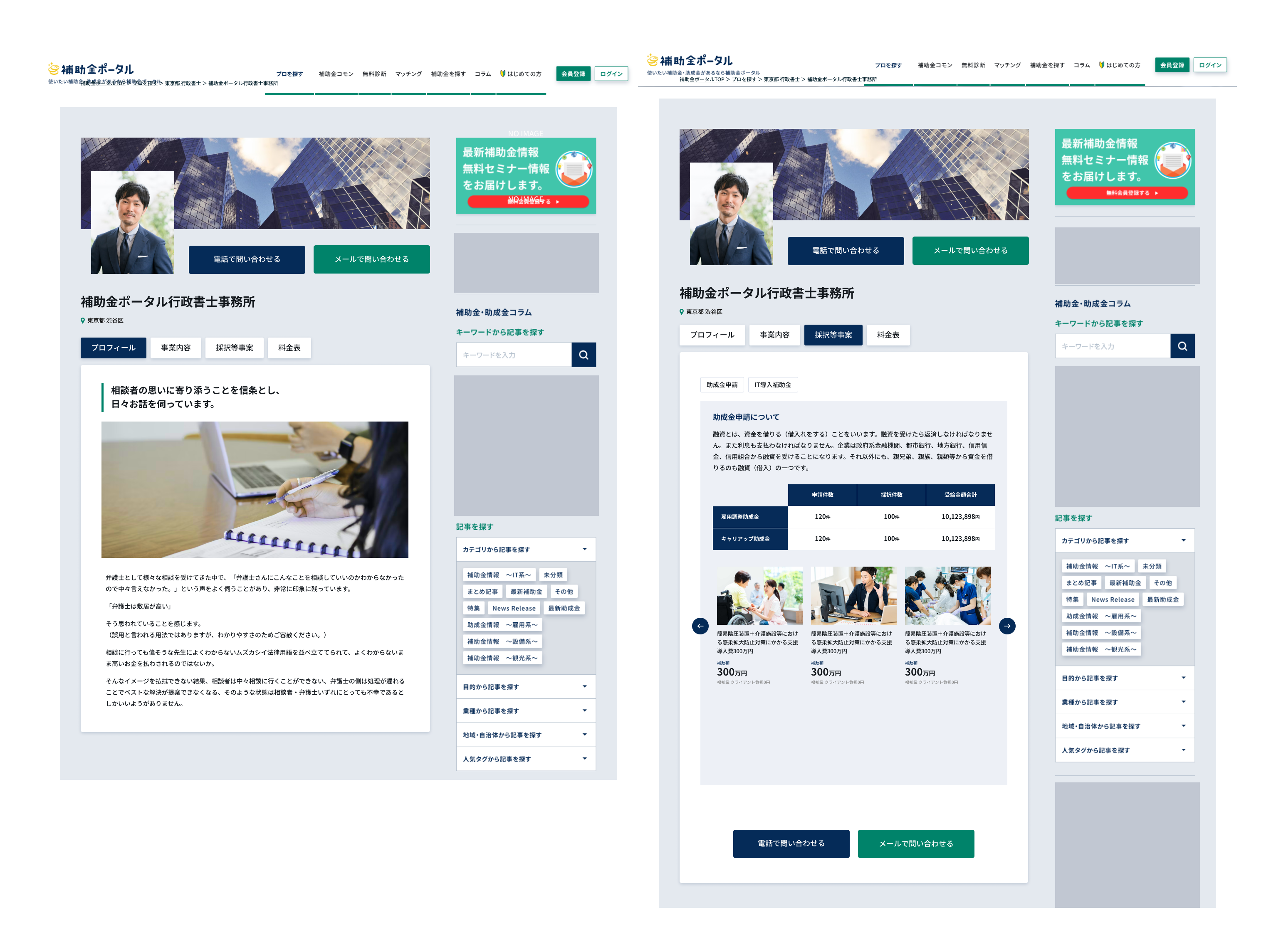 こうしたニーズに対して補助金ポータルは、全国の士業と企業をつなげられる新しい仕事が始まる場所となるプラットフォームサービスの士業ポータルを機能を追加しリニューアルするに至りました。