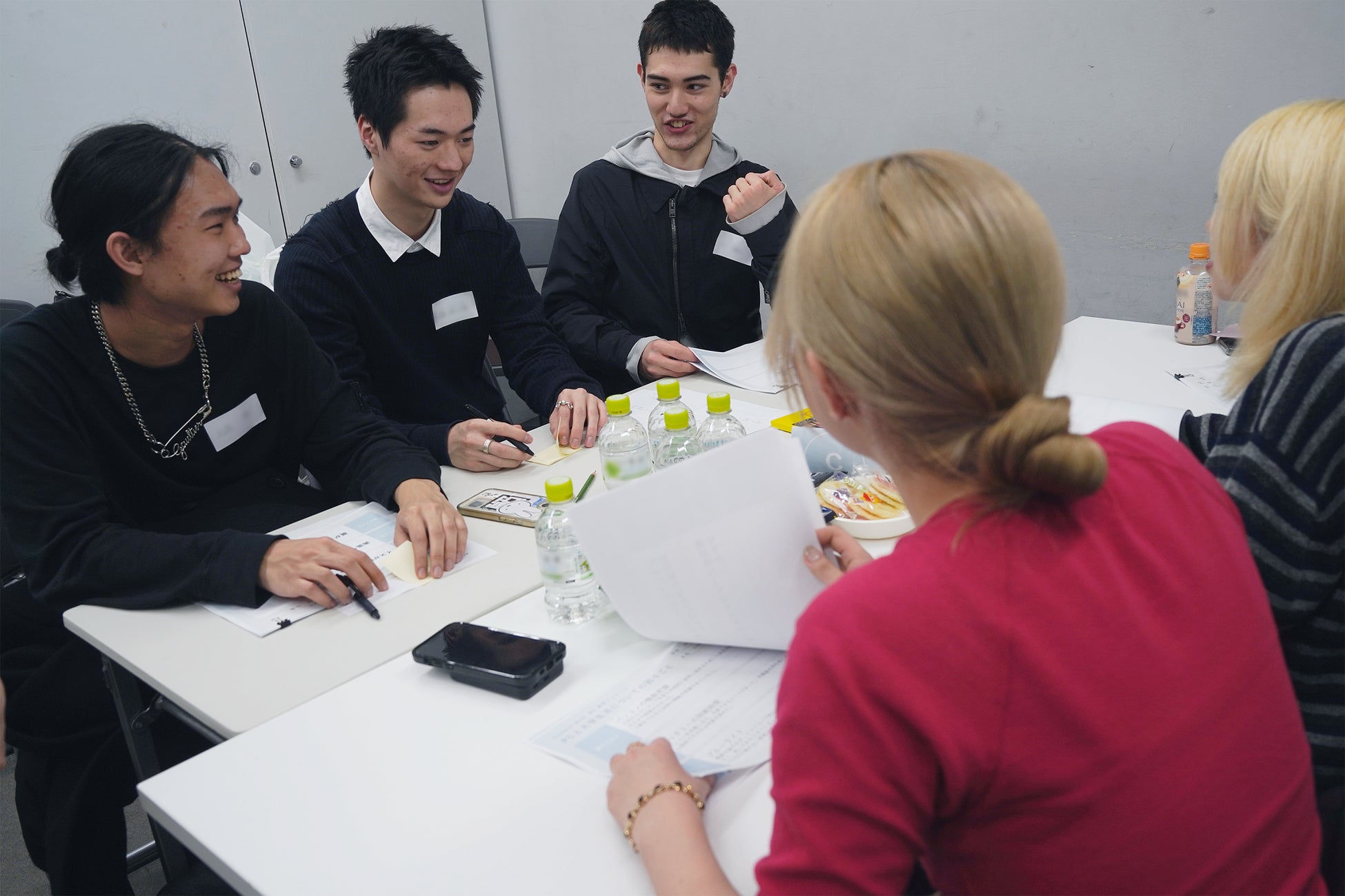 「GOOD CAMPUS LIFE Project」のVol.1となる「CAMPUS WEAR」の開発にあたり、早稲田大学 繊維研究会の学生たちとワークショップを開催。現役大学生ならではの視点で、たくさんのアイデアが活発に飛び交いました。アイデアの起点となる「パソコン作業の困りごと」に関するディスカッションでは、今回の「CUSHION JUMPER」の開発に繋がる「大学のイスが硬い」や「持ち運びが大変」などのアイデアが出されました。そのアイデアをヒントに、「心地よいパソコン作業着」をチームごとに考察。学生たちは次々とアイデアをイメージスケッチにしていきます。チームごとに目の付けどころもこだわりポイントも違う、個性的なアイテムが出揃いました。実際に学生たちがデザインしたワークシートは、「GOOD CAMPUS LIFE Project」サイトにて公開しています。