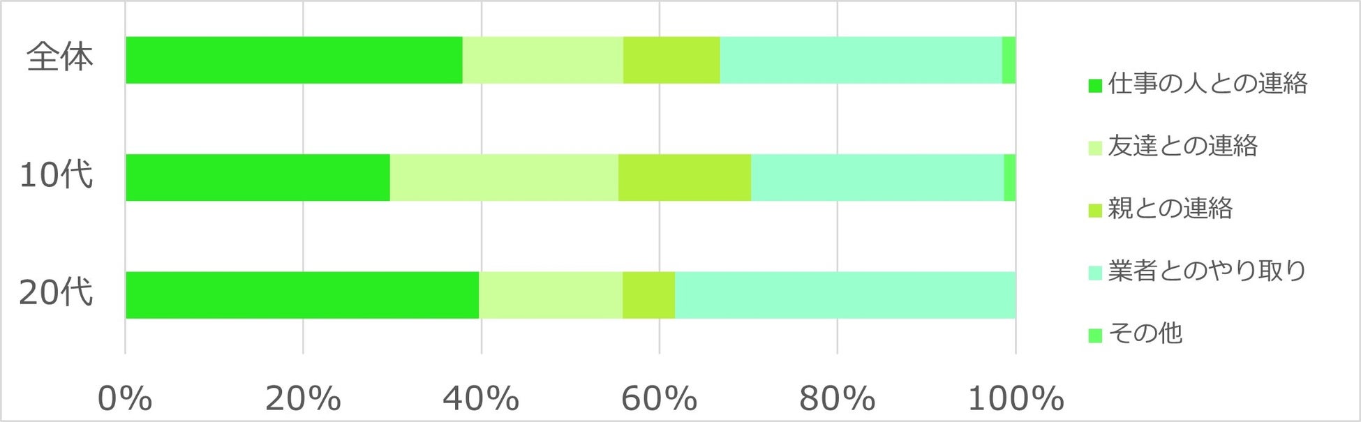 電話が苦手だと感じるシーンでは回答者の約6割が「仕事の人との連絡」で、一番という結果に。一方、意外にも若者の約4割は「友達との連絡」にも苦手だと感じるということが明らかになりました。