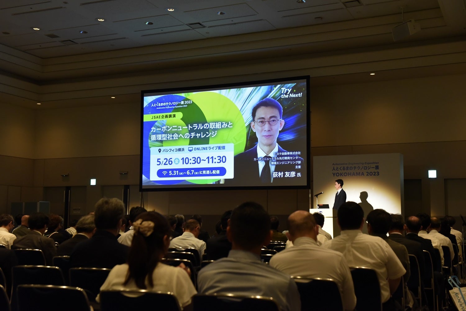 『英知を集結しよう!カーボンニュートラル、その先の循環型社会へ』を5月の「人とくるまのテクノロジー展2023 YOKOHAMA」・7月の「人とくるまのテクノロジー展2023 NAGOYA」の共通テーマに掲げています。横浜では、「人と地球を幸せにする技術とはなにか」を問い、新しい価値を共創していくためにバリューチェーンを生み出す。“くるま”に携わる全ての皆さまの英知を集結する「場」に多くの方々が来場されました。