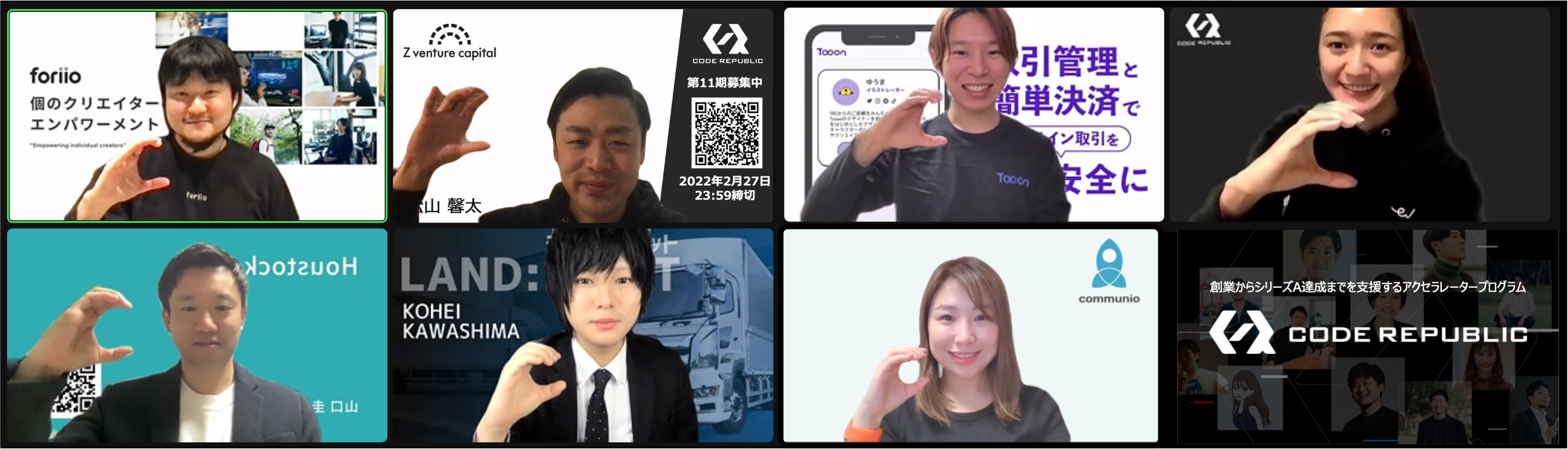 Zホールディングス株式会社のコーポレートベンチャーキャピタルであるZ Venture Capital株式会社(以下、Z Venture Capital)と、日本および東南アジアで最大級のシードVCであるEast Venturesが共同運営するアクセラレーターCode Republic( https://www.coderepublic.jp/ )は、2月16日に第10期のデモデイを開催しました。