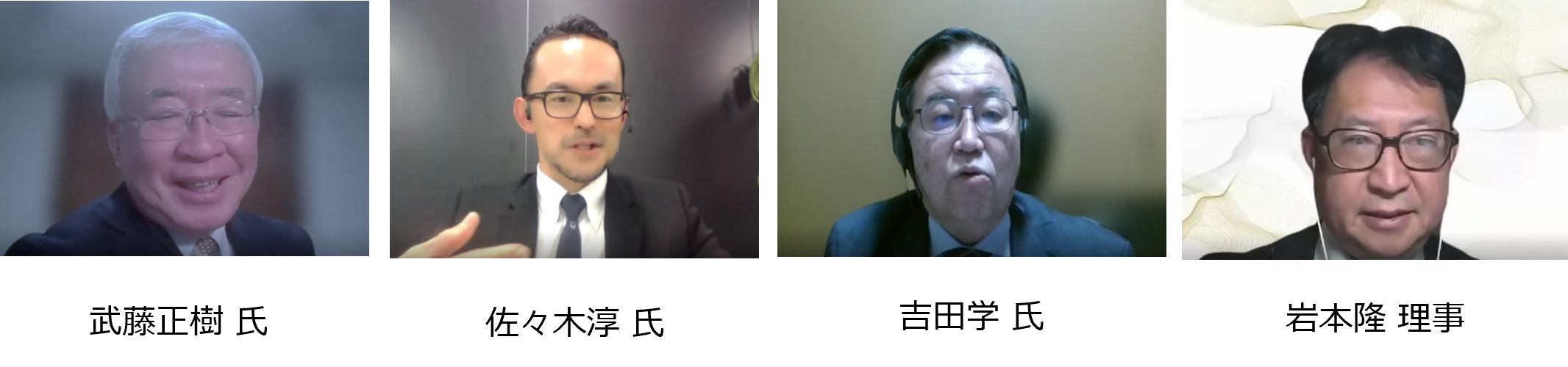 冒頭では、当協会理事の酒井光郎より協会概要及びパブリックアフェアーズ活動の最新の活動実績をご紹介。その後、規制改革推進会議医療・介護ワーキング・グループ専門委員を務めた日本医療伝道会衣笠病院グループ相談役 武藤正樹氏より『コロナで変わるかかりつけ医制度』をテーマに、制度化において重要になるポイントとその理由などの基礎的概要についてご講演賜りました。そして、日々臨床現場でご活躍されている在宅医 医療法人社団悠翔会 理事長・診療部長の佐々木淳氏より『医療現場の課題とかかりつけ医制度への期待』をテーマに、臨床現場の有する課題とそれへの対策としての制度への期待についてご講演を賜りました。