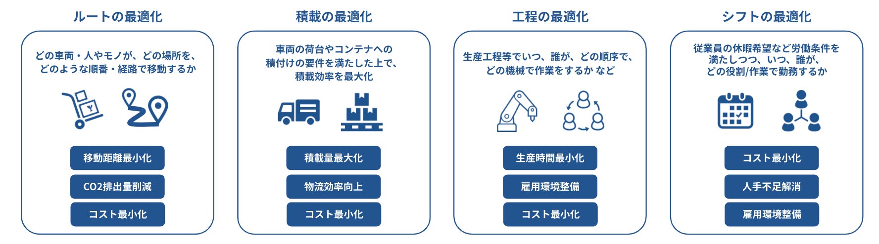 グルーヴノーツは、クラウドプラットフォーム「MAGELLAN BLOCKS」において、量子コンピュータマシンを活用したクラウドサービスを世界で初めて商用化し、ルート最適化や積載最適化、工程最適化、シフト最適化など、さまざまな業務課題に対応する実用的なイジングモデル/ソリューションを開発・提供しています。「MAGELLAN BLOCKS」がイジングモデルを自動生成するため、ユーザーは最適化問題の定義や難しいイジングマシンの構造を意識することなく利用でき、業務上のルールや制約を入力するだけで最適な答えを瞬時に得ることが可能になります。