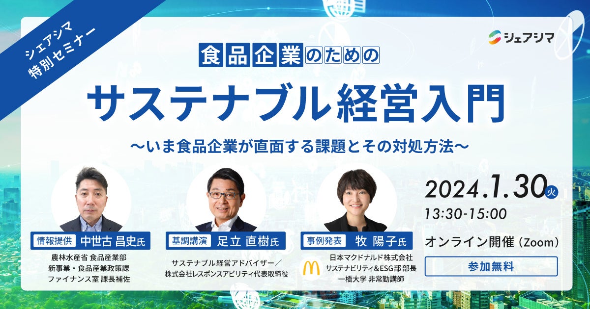 《シェアシマ特別セミナー》食品企業のためのサステナブル経営入門|1月30日(火)開催