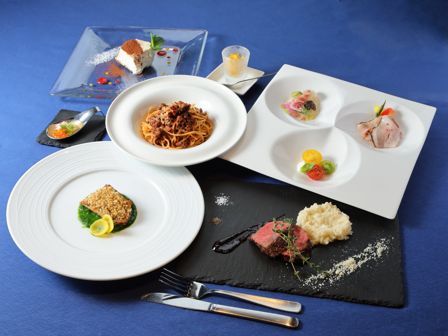 丹沢山脈を望む県央地区に飼育している神奈川県産の「相模豚」を使ったロースハム、牛肉文化発祥の地である神奈川県で丹精こめて育まれた4等級以上の高品質牛肉「横濱ビーフ」のビステッカ(ビーフステーキ)、横浜中央卸売市場からの新鮮な季節の鮮魚のカルパッチョなど、地元の方だけでなく、遠方からお越しの方にも神奈川・横浜を感じて頂ける内容となっております。