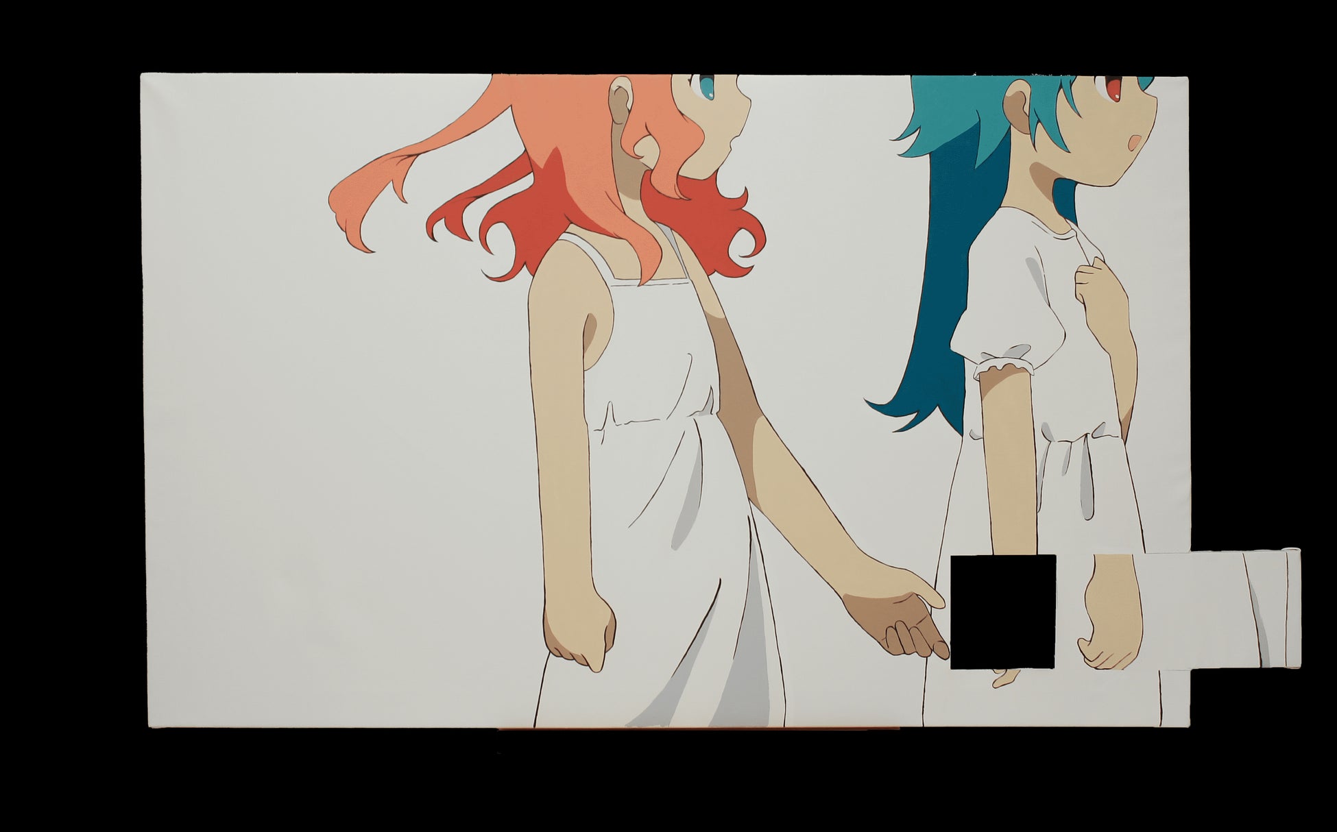 二次元のフラットなキャラクターと日常的な素材を合わせ、キャンパスの枠を拡張するような作品を制作しております。私が面白いと感じたことを、見てくれた方にも面白いと感じてもらえるものを作りたいと思っています。