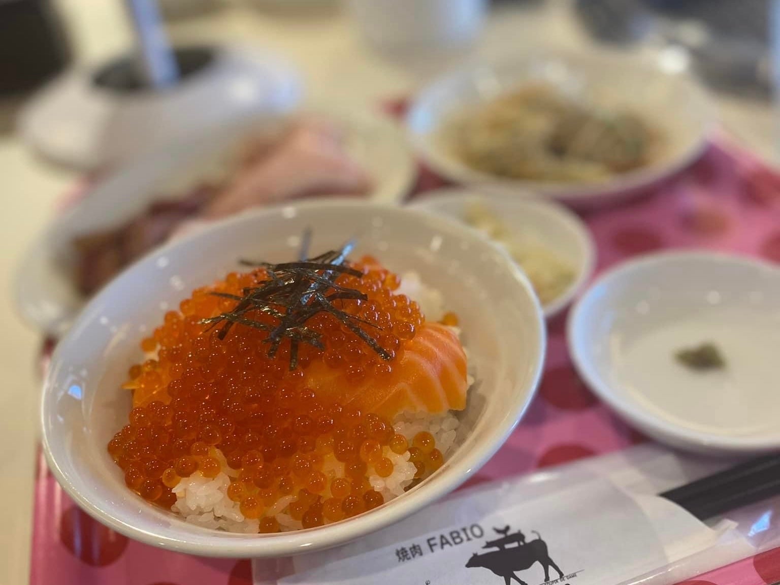 この日は天気に恵まれ、絶好の観光日和。数日前の台風が嘘のような快晴に恵まれました。昼食は地元の焼肉屋さんで八幡平サーモンのいくら丼、八幡平牛、佐助豚など生産者の思いが詰まった厳選食材を堪能、参加者は舌鼓を打ちました。