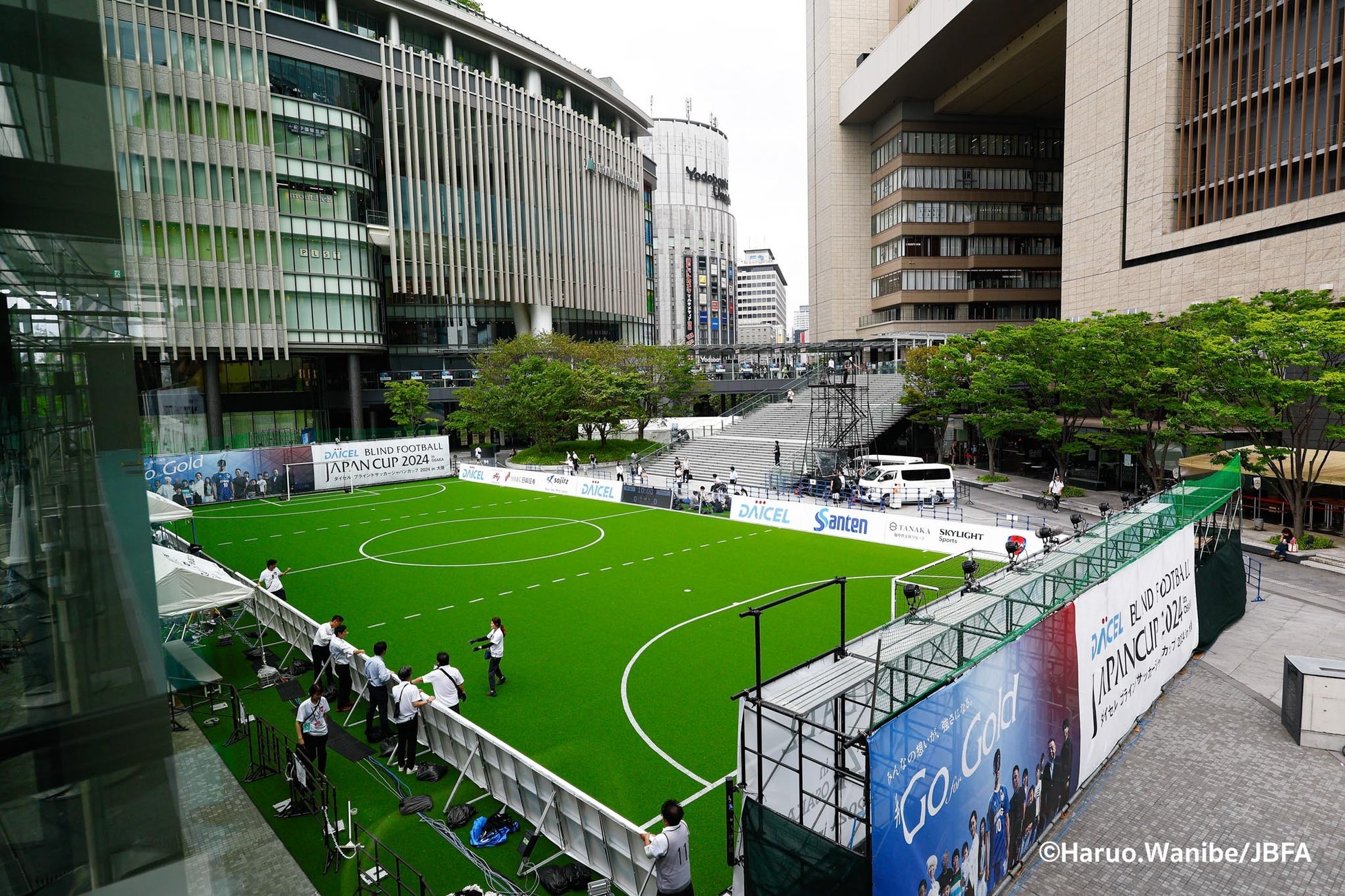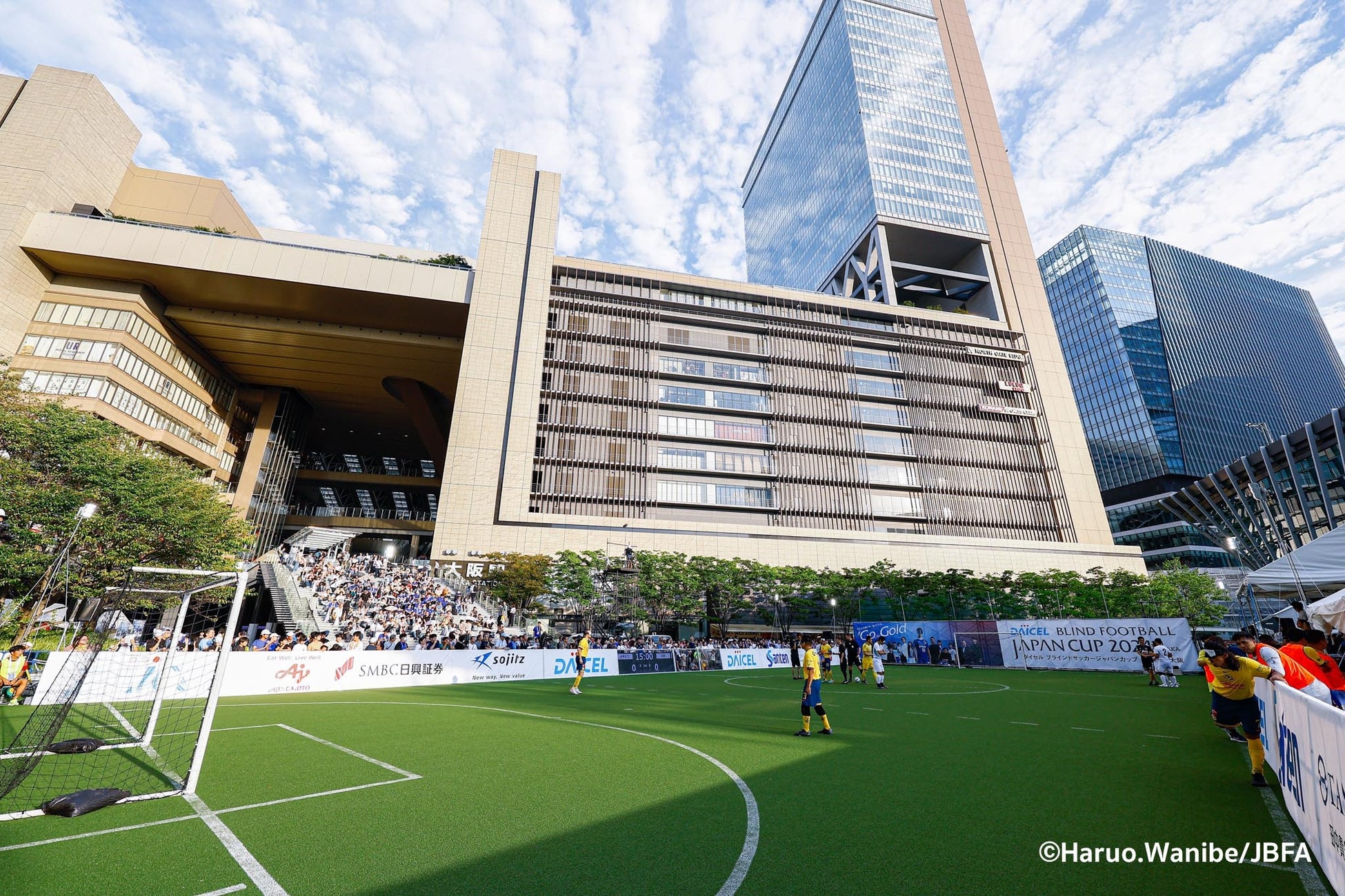 JBFA は、昨年7月に、日本を含む4 カ国を招聘した国際大会「ダイセル ブラインドサッカージャパンカップ2024 in 大阪」を、大阪駅中央北口正面に位置するグランフロント大阪「うめきた広場」で開催しました。国内において、ブラインドサッカーの大会が、日本有数の大都市のターミナル駅から徒歩3分という立地にあるオープンスペースで開催されるのは初めてで、多くの方が試合を観戦されSNS等を中心に大きな話題を呼びました。これをうけ、今年も同会場で国際大会を開催することが決定しました。