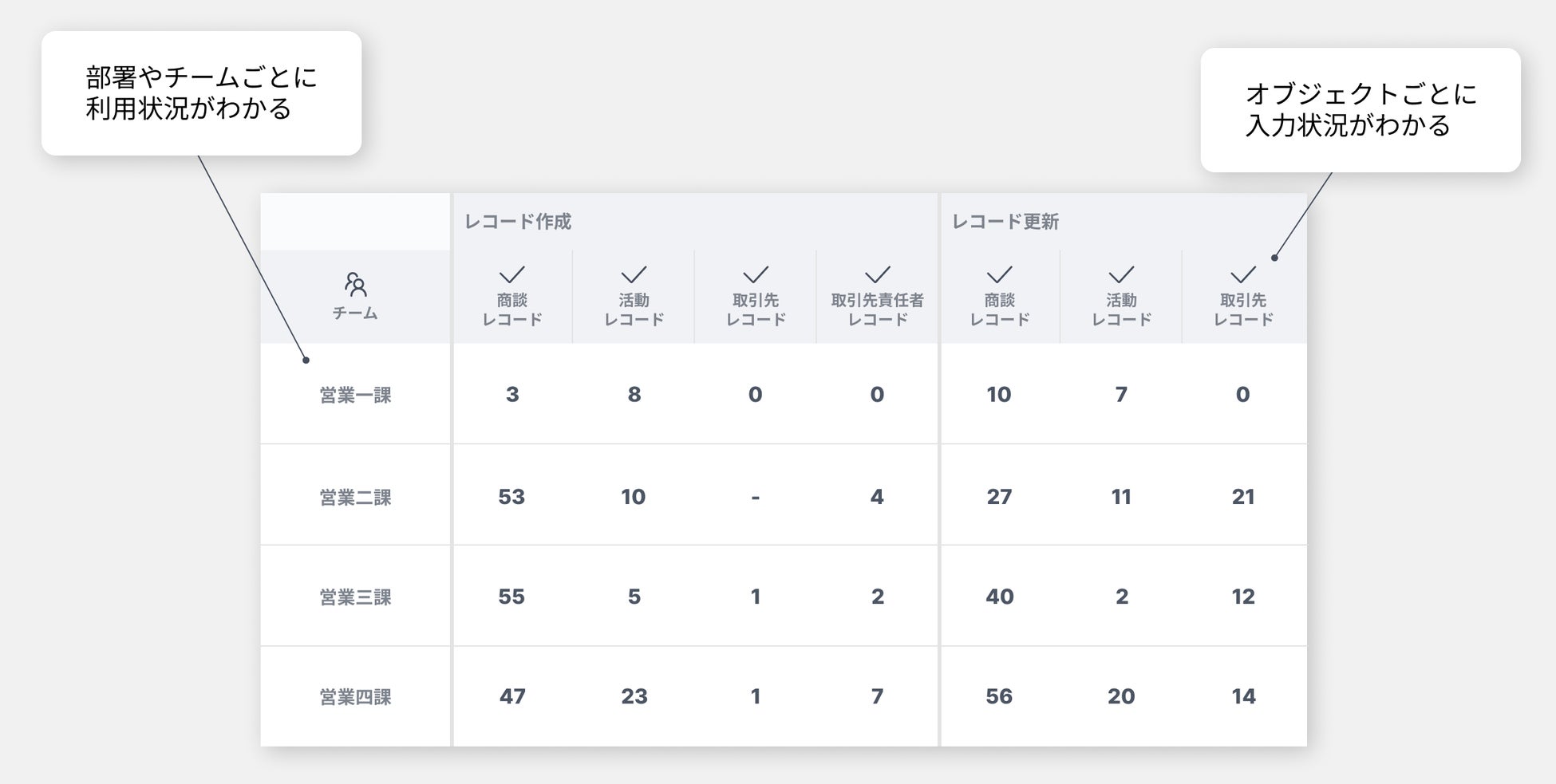 部門別・ユーザー別のSalesforce利用状況を可視化