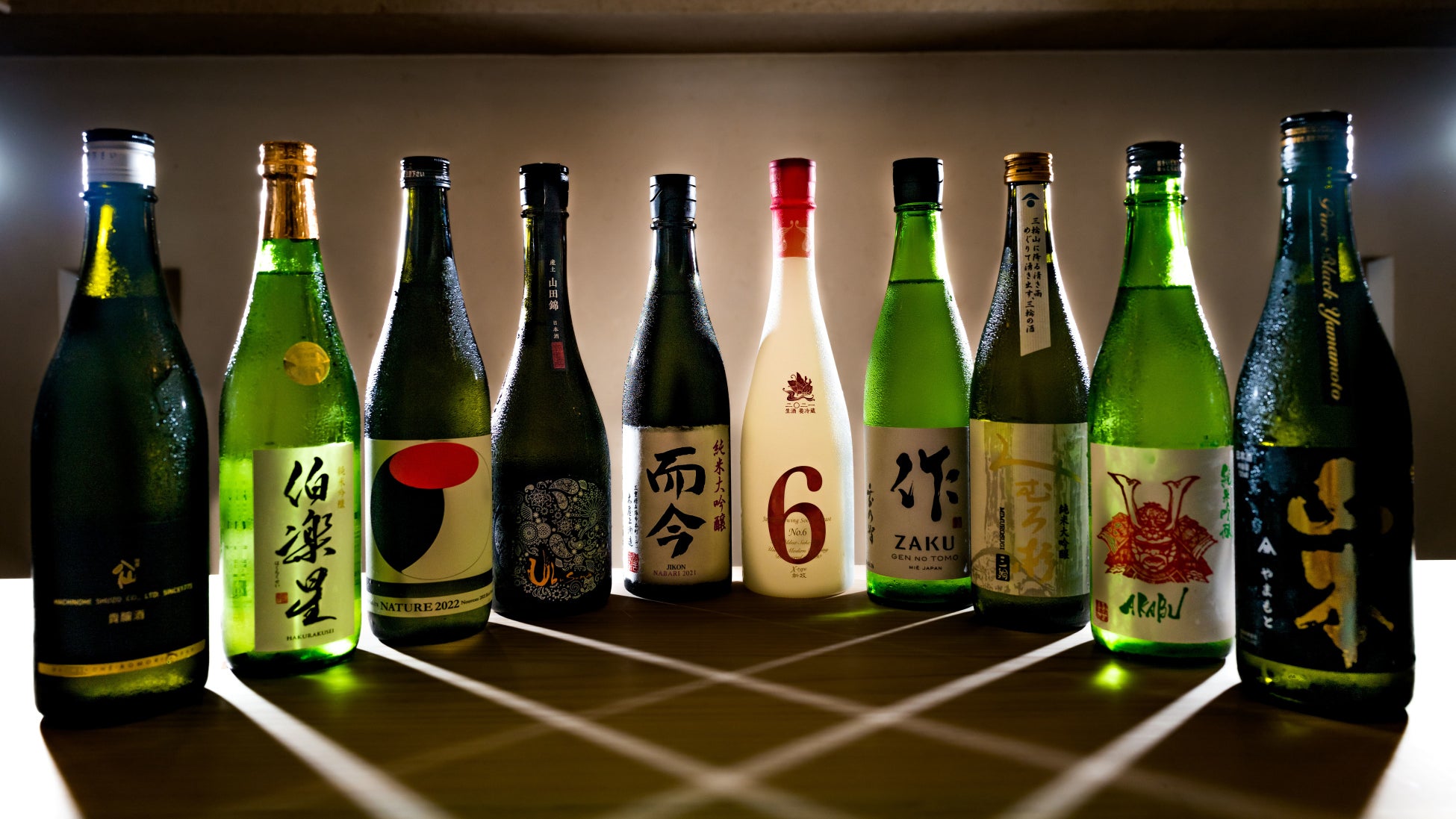 日本全国から届く日本酒は、徳利、ボトル、グラスでご用意しております。