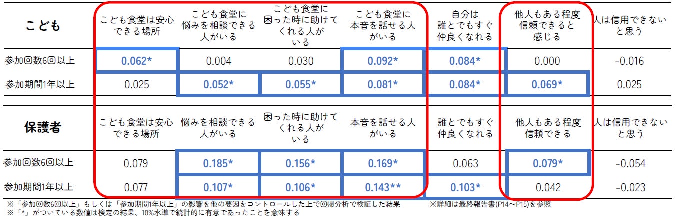 こども食堂への参加回数の多さと、子どもの「他者への信頼感」「社会性」との間に相関があることが明らかに
