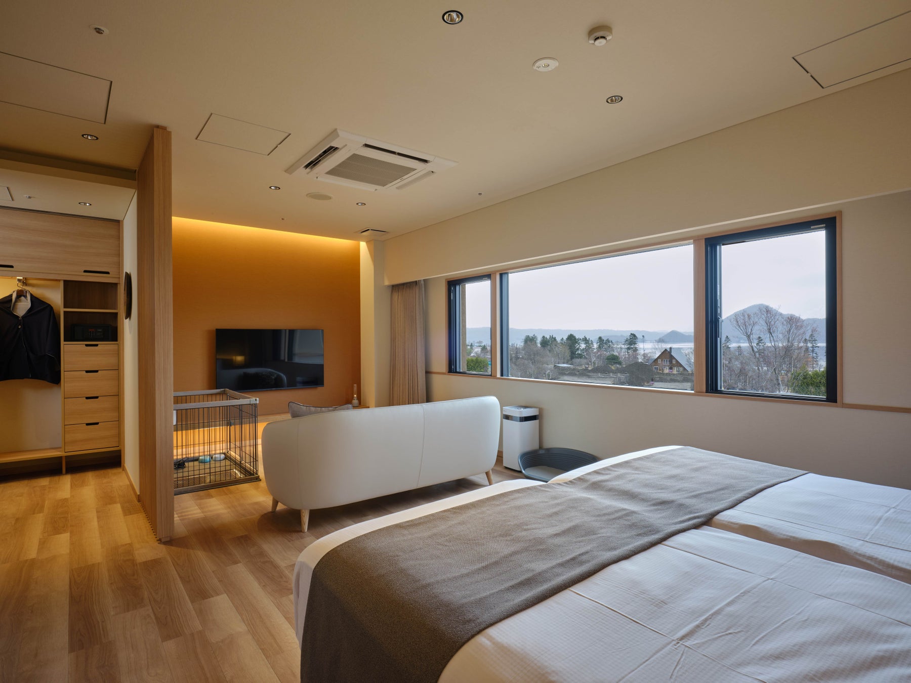 家族の一員であるワンちゃんとの旅行を存分にゆっくりと楽しみたい方必見!「洞爺湖 鶴雅リゾート 洸の謌」ではこの度、ワンちゃんのお誕生日にご宿泊で、ワンちゃんのご利用料金が半額になる特別プランをご用意しました。本プランでは愛犬家の皆様に快適にお過ごしいただけるよう、飼い主様のお食事をお部屋にご提供し、ワンちゃんと離れることなく安心してゆっくりと滞在をお楽しみいただけます。