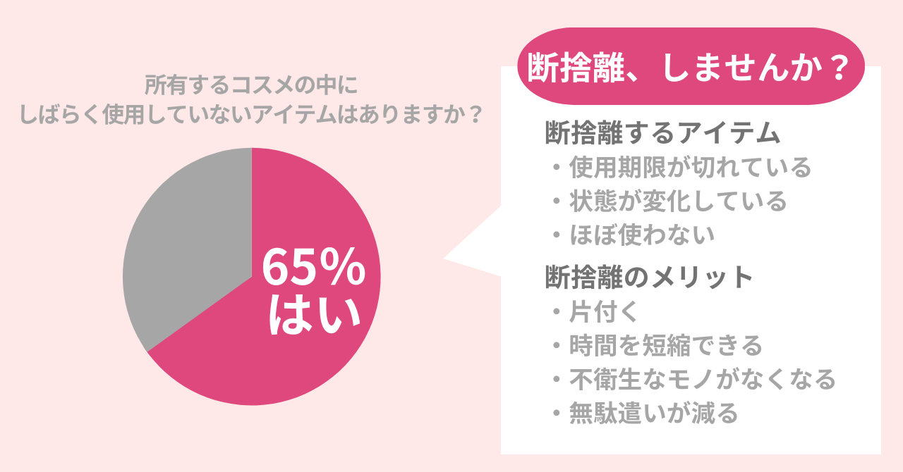 65%の女性がしばらく使用していないコスメを所有。そのコスメ、安全面の問題はありませんか?断捨離がおすすめな理由とは