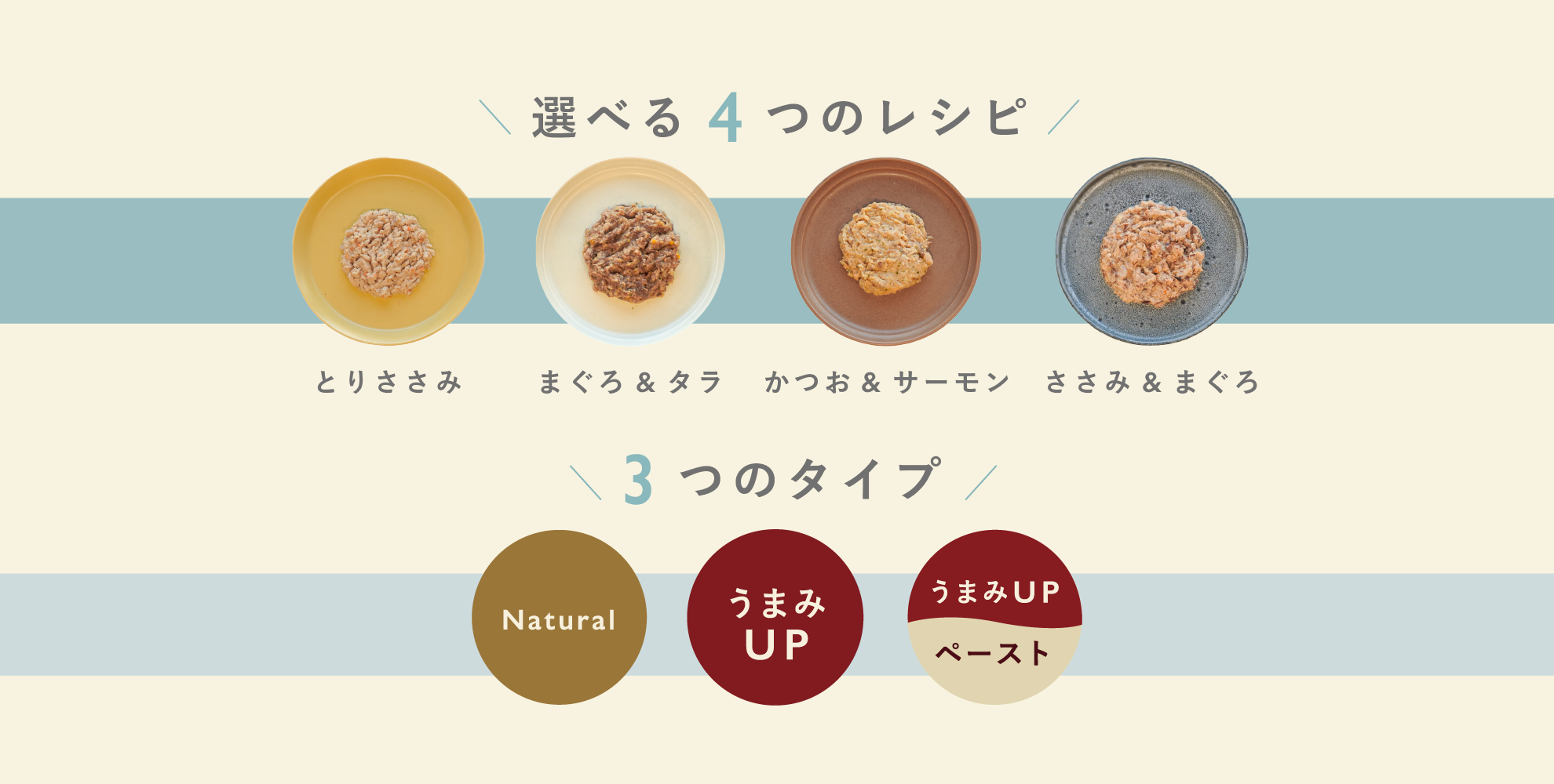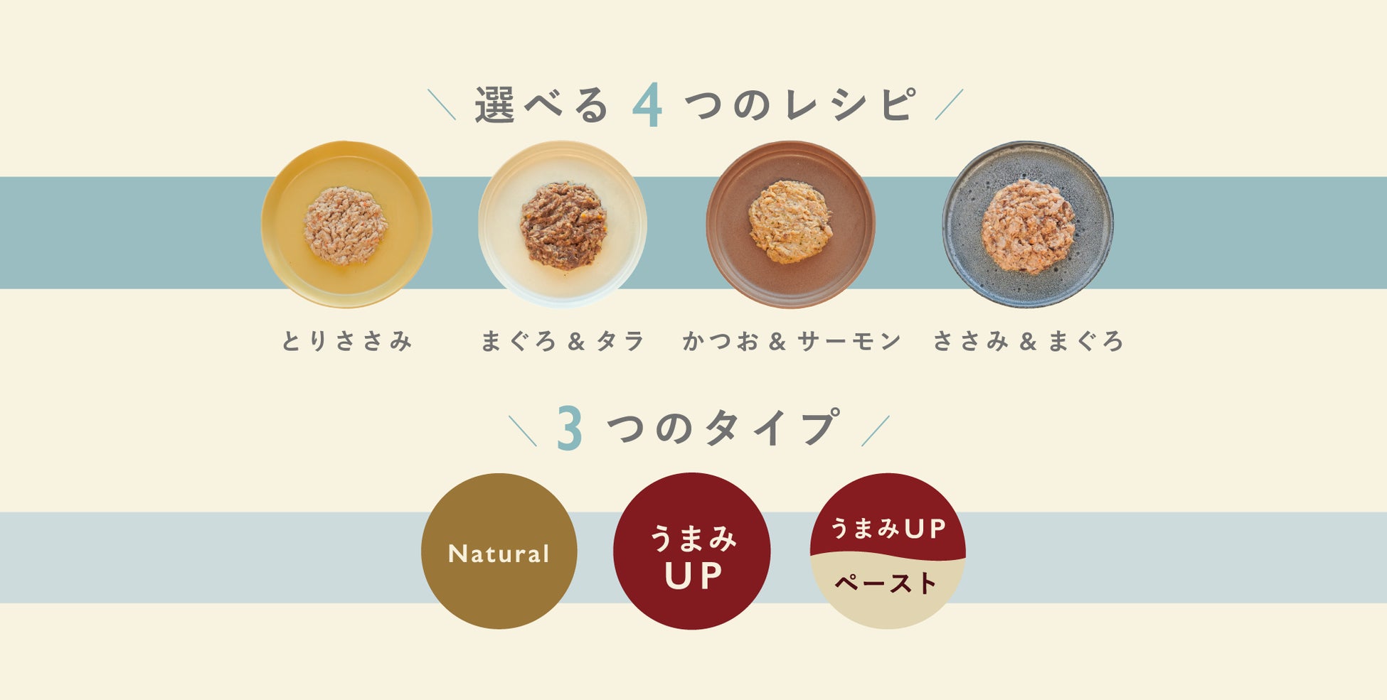 愛猫の好みに合わせて選べる4つの味×3タイプ
