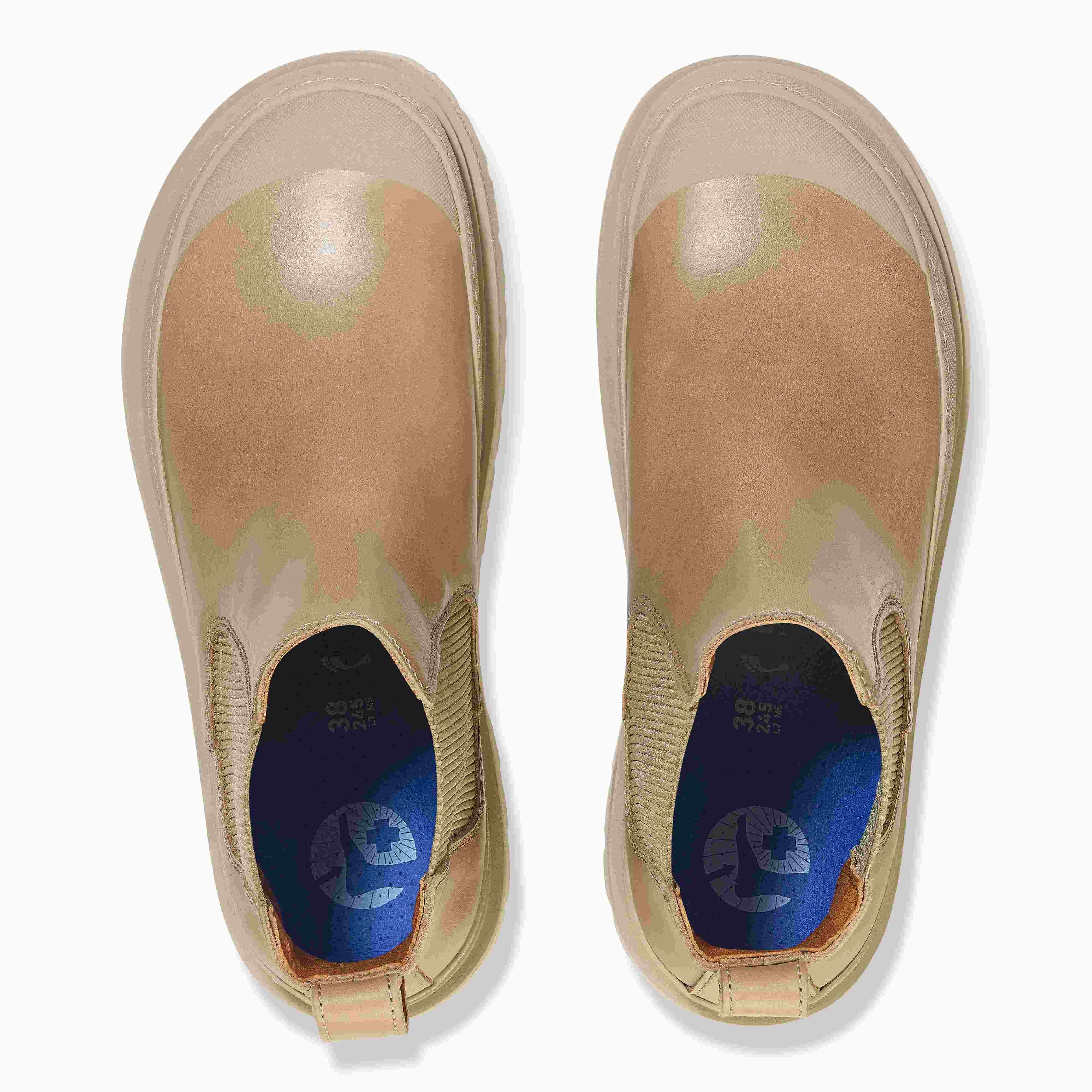 柔軟性、屈曲性に富むディープブルーフットベッドをインソールに採用し、しっかり歩いても疲れにくい快適さを備えています。更に、ソール部分のサイドに覗くコルクのランナーボードがクッション性を高めます。耐久性に優れたラバーのアウトソールは、ビルケンシュトックのプロフェッショナルラインからインスパイアされた滑りにくい形状で、頼もしいグリップ力を発揮します。