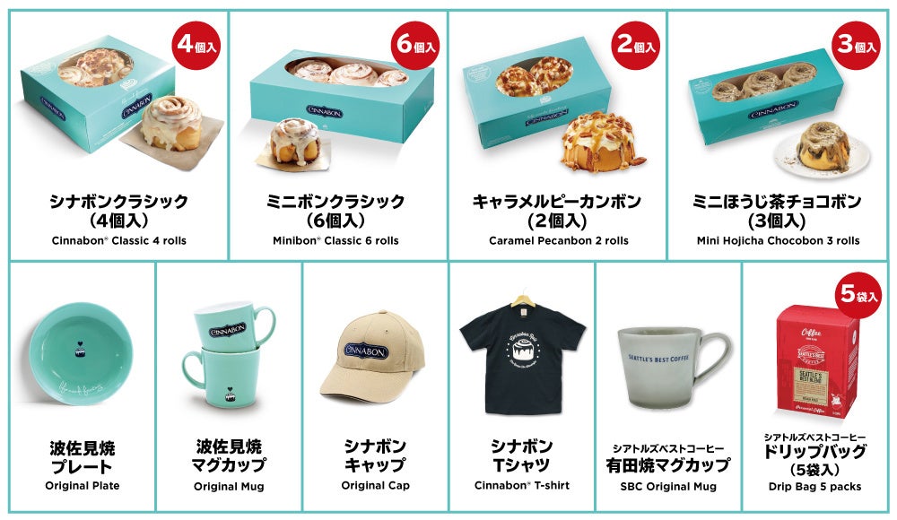 また、「シナボン」と相性が抜群の「シアトルズベストコーヒー」のドリップバッグコーヒーや、シナボングッズも豊富に取り揃えておりますので、スタッフ一同、皆さまのお越しを心よりお待ちしております。