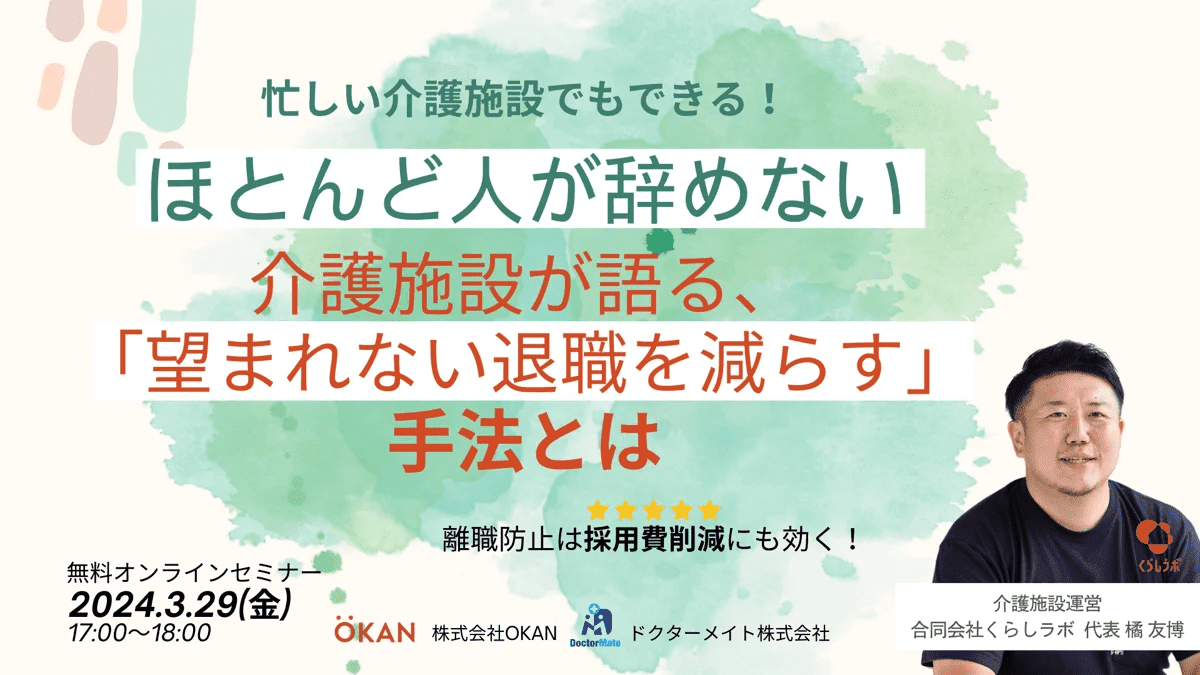 【介護施設運営者向けWebセミナー】ほとんど人が辞めない介護施設が語る「望まれない退職を減らす」手法とは