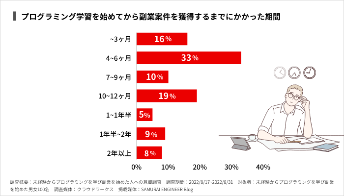 [2]副業案件を獲得するまでに、約3割の人が「4〜6ヶ月」かかっている