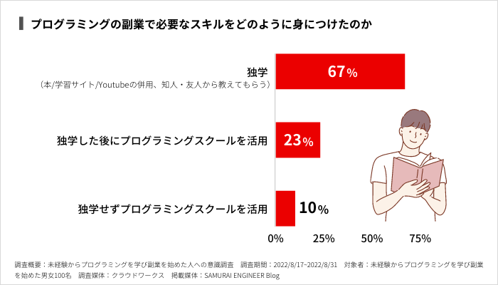 [1]未経験からプログラミングを学び、副業を始めた人の67%が「独学」でスキルを習得