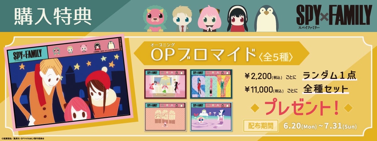 『SPY×FAMILY』限定グッズを購入2,200円(税込)ごとに『OPブロマイド』をプレゼント!