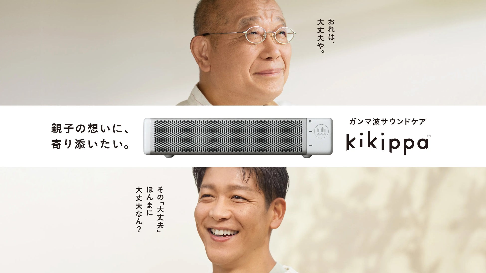 健康価値の提供を通じて社会に貢献するシオノギヘルスケア株式会社(本社:大阪府大阪市 代表取締役社長:吉本 悟、以下、シオノギヘルスケア)は、ダイバーシティ&ヘルスケア領域での研究開発と事業化に取り組むピクシーダストテクノロジーズ株式会社(本社:東京都中央区、代表取締役:落合陽一、村上泰一郎、以下「PxDT」)と共同開発したガンマ波サウンドケアスピーカー「kikippa(ききっぱ)」の新TVCMに、本年6月から同商品のブランドアンバサダーを務めている笑福亭鶴瓶さんと駿河太郎さんを起用し、9月10日(火)から全国(一部地域を除く)で放送します。