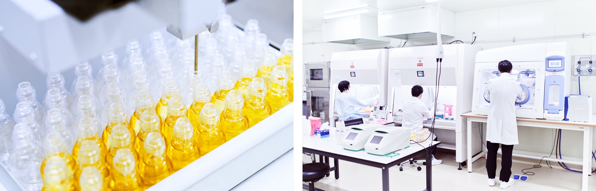 KINS初の独自原料「Bellp(べルプ)」は、このポストバイオティックスにあたるものです。菌バンクをもち、皮膚常在菌や腸内細菌の研究を行う九州の研究機関「バイオジェノミクス」の協力を仰ぎ、ヒト由来の菌を含む24種の菌の共棲発酵で作り上げた代謝物。乳酸やアミノ酸、ビタミン、ポリフェノール、 ポリアミン、短鎖脂肪酸といった、健康にも美肌にも有用な468種の物質を含んでいます。