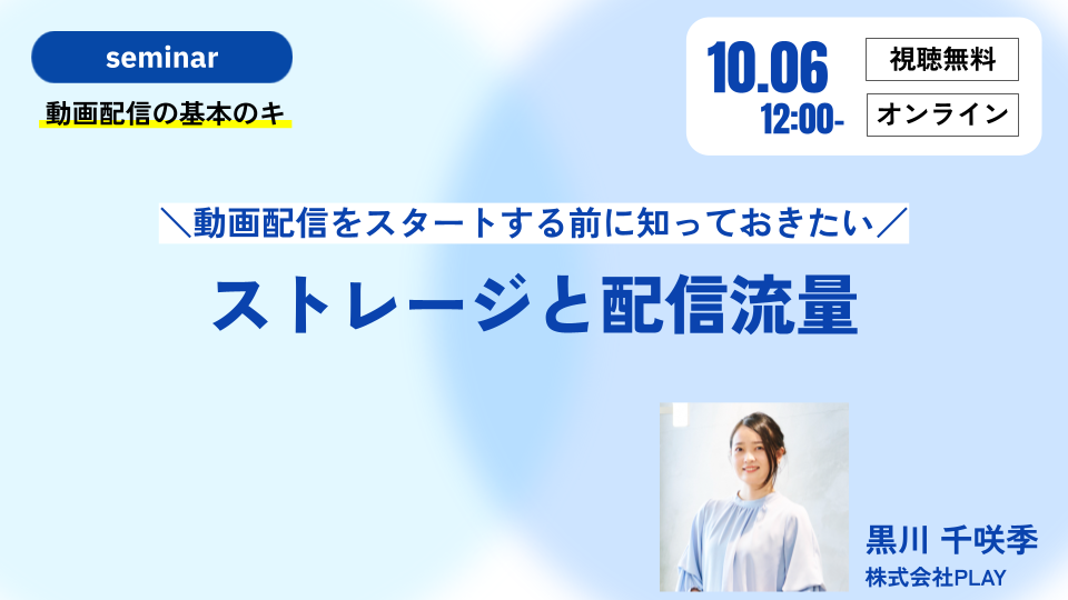 10月6日(金)12時〜「動画配信の基本のキ 配信流量とストレージについて」セミナーも開催予定です。